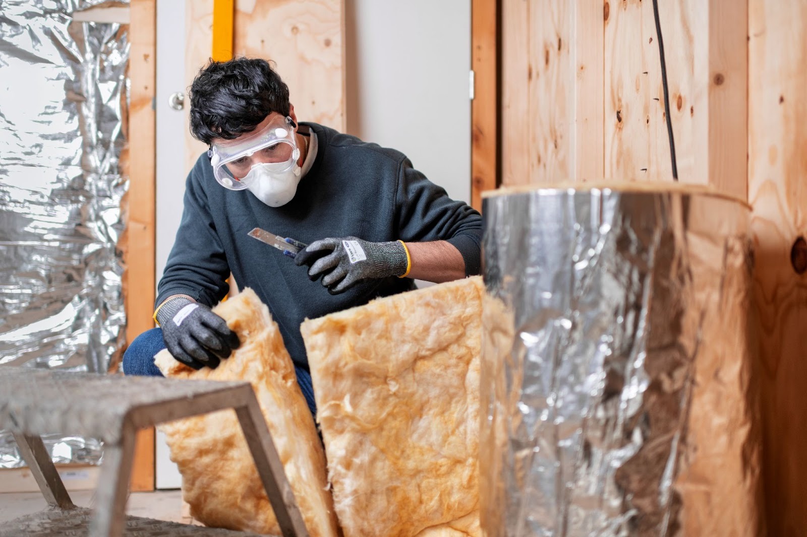 Simple flooring projects like laying laminate or vinyl involve risks such as cuts from sharp utility knives or saws during cutting, eye injuries from flying debris or dust, strains from kneeling or heavy lifting of materials, dust inhalation from cutting or sanding, slips on uneven subfloors or adhesives, and potential exposure to VOC fumes from glues or underlay. Using proper personal protective equipment (PPE) greatly reduces these hazards.